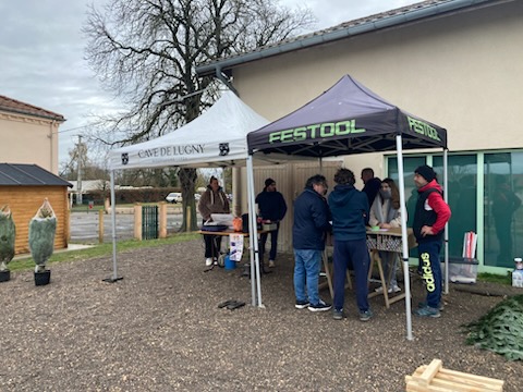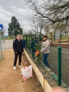 Pendant que les élus embellissaient les parterres devant la salle multifonctions et autour de l’école avec les décorations de Noël, le Sou des Ecoles a procédé à la vente de sapins et papiers cadeaux, agrémenté de vin chaud et crêpes.