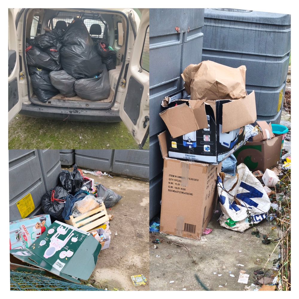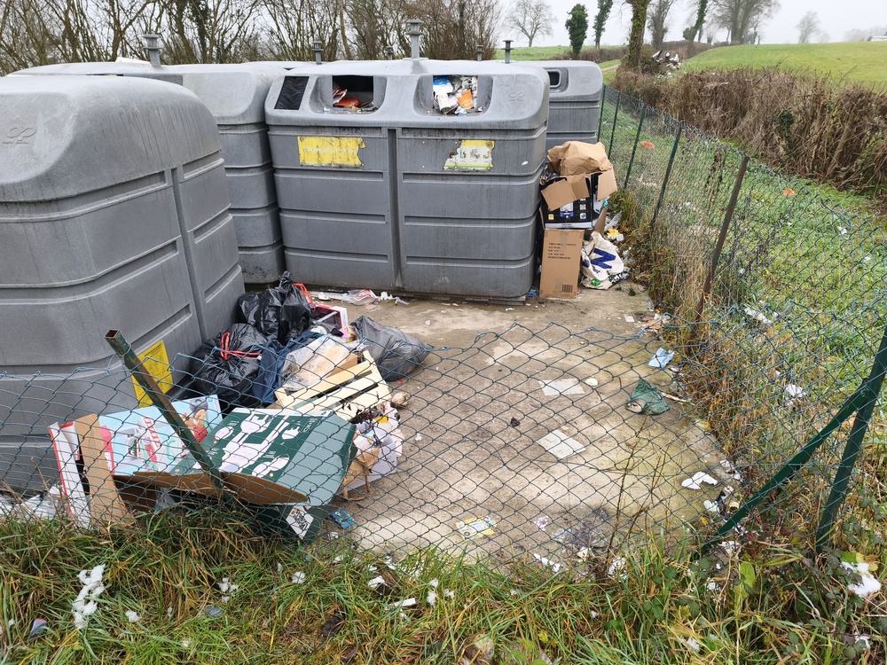Noël est passé et les cartons et cadeaux ont été ouverts, ce qui n’excuse en rien que ces détritus se retrouvent à côté et non dans les points d’apport volontaires (PAV), ou même à la déchetterie qui se situe a 3 km, en plus des bidons, cartons, boîtes de lait…
